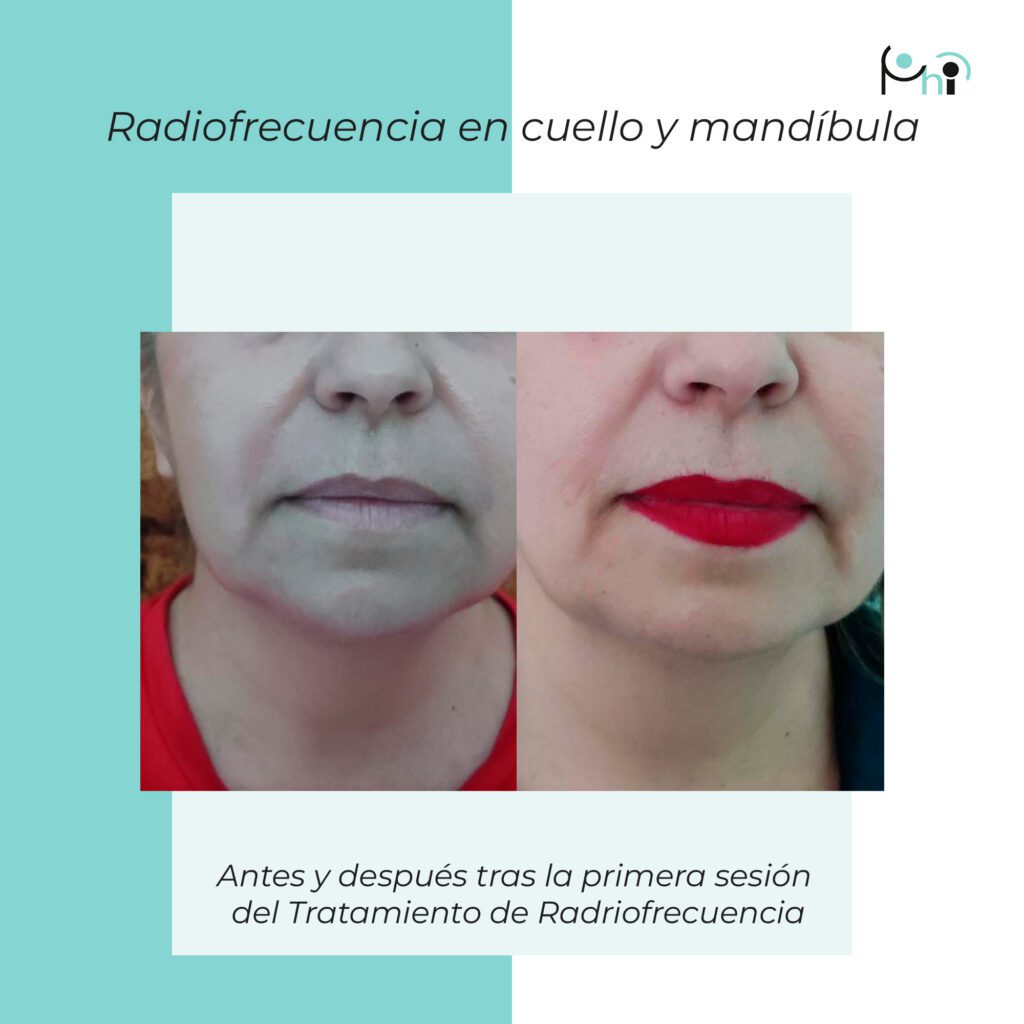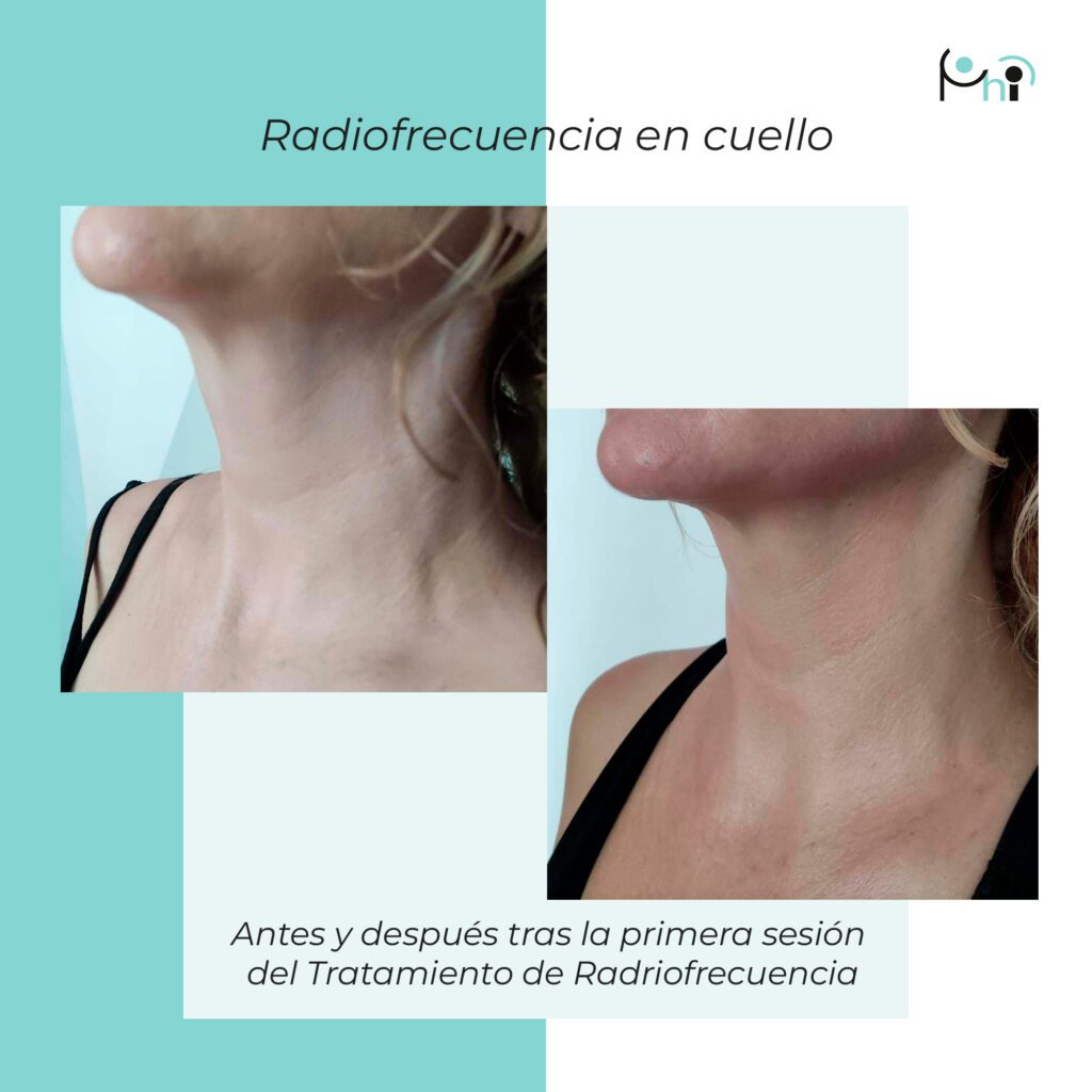 The immediate effect of radiofrequency treatment is collagen retraction. After successive sessions, the restructuring of the deep collagen is achieved and the formation of new fibres that replace the already aged ones, these provide greater elasticity of the tissues, resulting in smoother skin, i.e. wrinkles and epithelial flaccidity are reduced. Radiofrequency can be applied to both the face and body, allowing our professionals to act on the area in a localised manner.